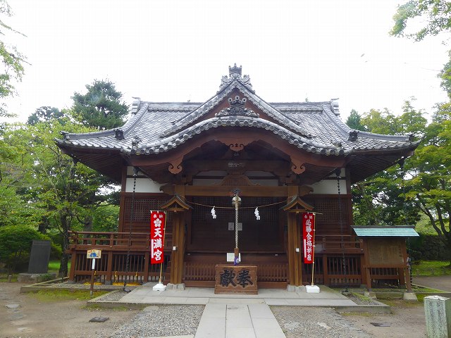 城内の鎮守神として祀られていた天満宮・火魂社と合祀して現在地に建立された。