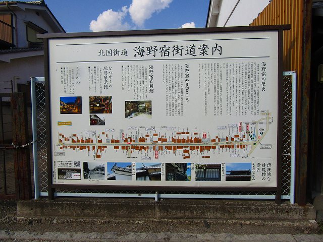 資料として気になる街角 撮っておきや!(by UFO先生) 海野宿(うんのじゅく)は、長野県東御市本海野にある、 江戸時代における北国街道の宿場の呼称である。 現在も通りの両側に約100棟の家が連なる歴史的な町並みを形成しており、 「日本の道100選」のひとつにも選ばれている。 信濃国(信州、現:長野県)の東部、軽井沢と善光寺門前町(長野市)を 結ぶ北国街道(北国脇往還、現:国道18号旧道)の中間あたりにあった宿駅である。 もともと、平安・鎌倉時代の海野氏の領地として栄えた城下町で、 江戸時代になってから北国街道の宿場町として開設された。 現在は東御市本海野の市道田中・西海野線の一部にあり、 延長650 m、幅10 mの旧北国街道の両側には、旅籠屋造り、蚕室造り、 茅葺屋根など当時使用された約100棟の歴史的な建物が残る。 家並みの特徴は、表に格子戸がはまった家並みが続いており、 屋根に防火用の壁である「うだつ」が見られ、 2階格子の持送りや出桁(だしげた)に彫刻が施された意匠が特に目を引く。 宿場の通りの中央には、江戸時代から変わらぬ位置にある「表の川」と よばれる用水堰が流れていて、向かい合わせの家ごとに洗い場が設けられており、 江戸時代には馬に水を飲ませたり、旅行者が足を洗ったと考えられている。 (Wikipediaより) (※=マウスポインターを画像上に置いて下さい)
